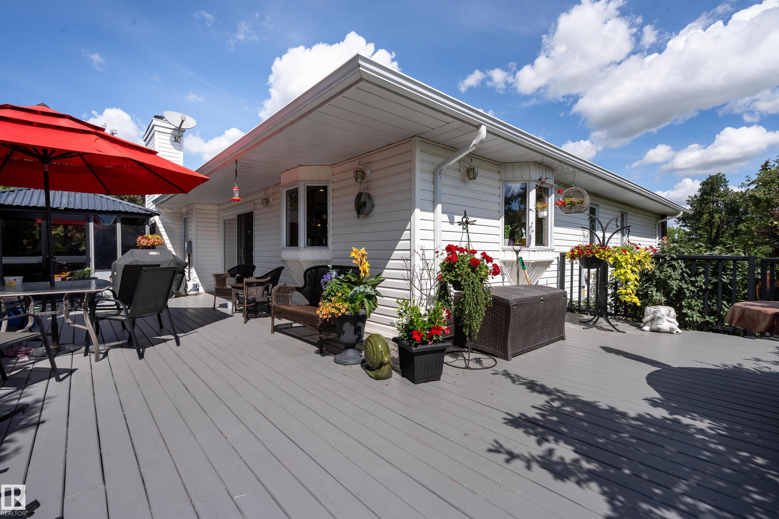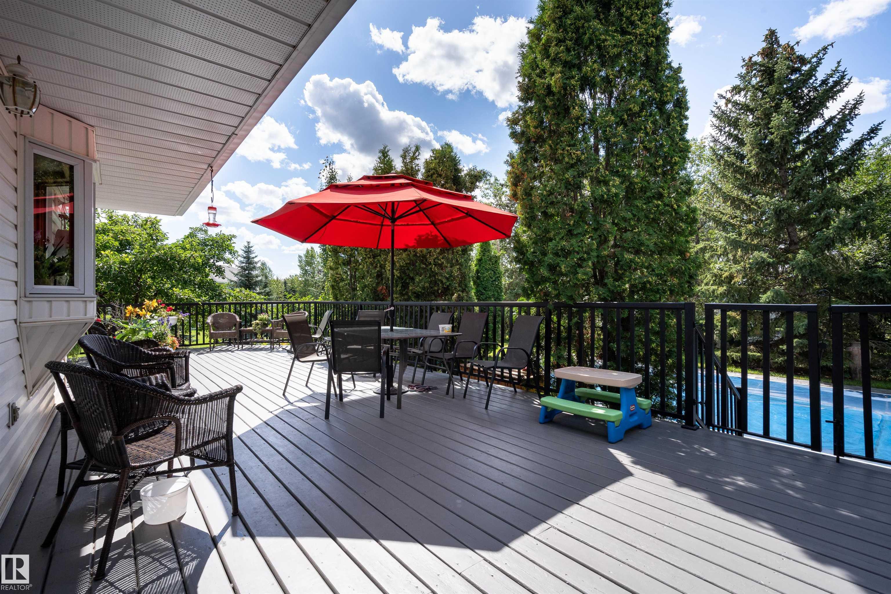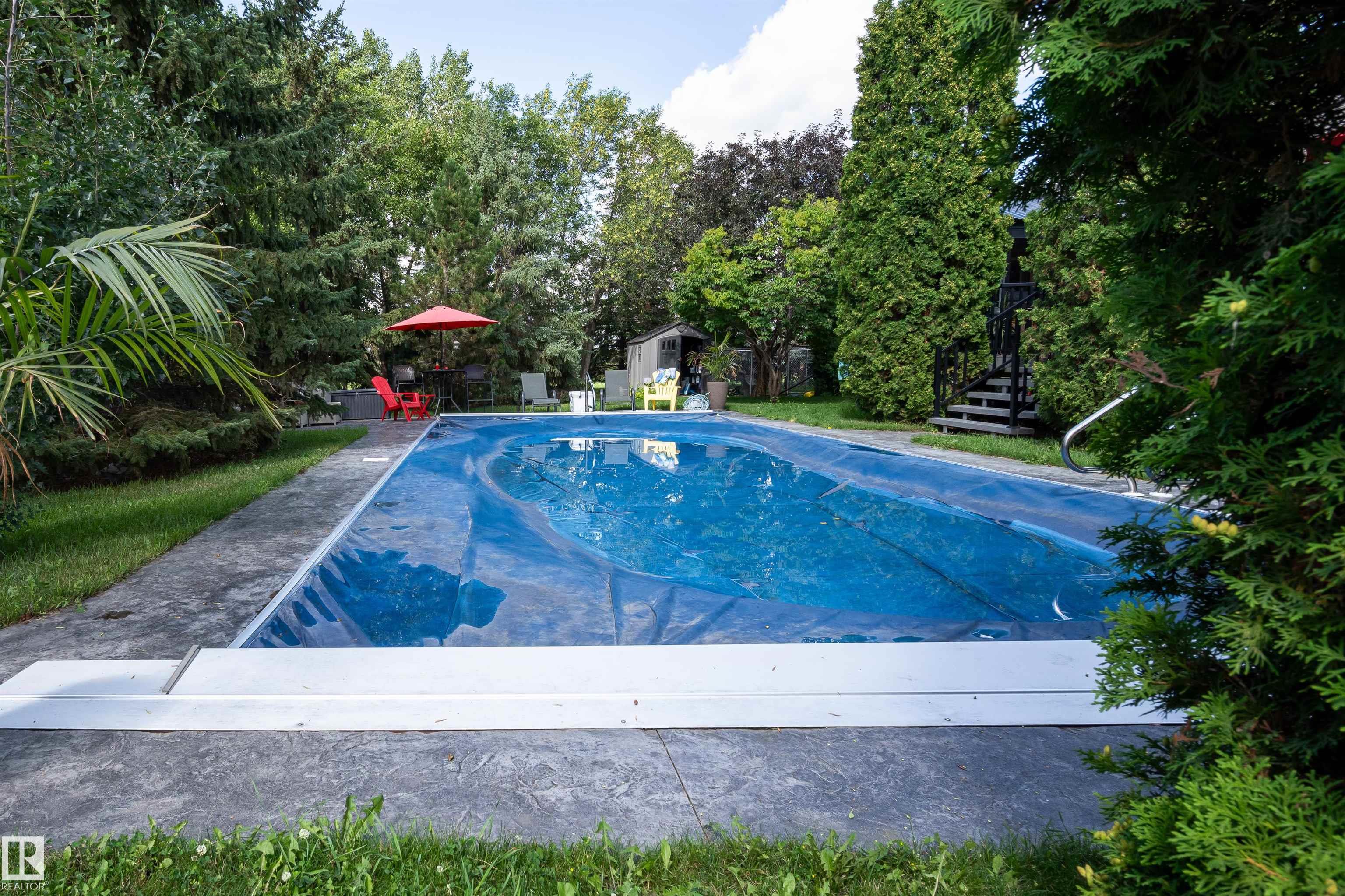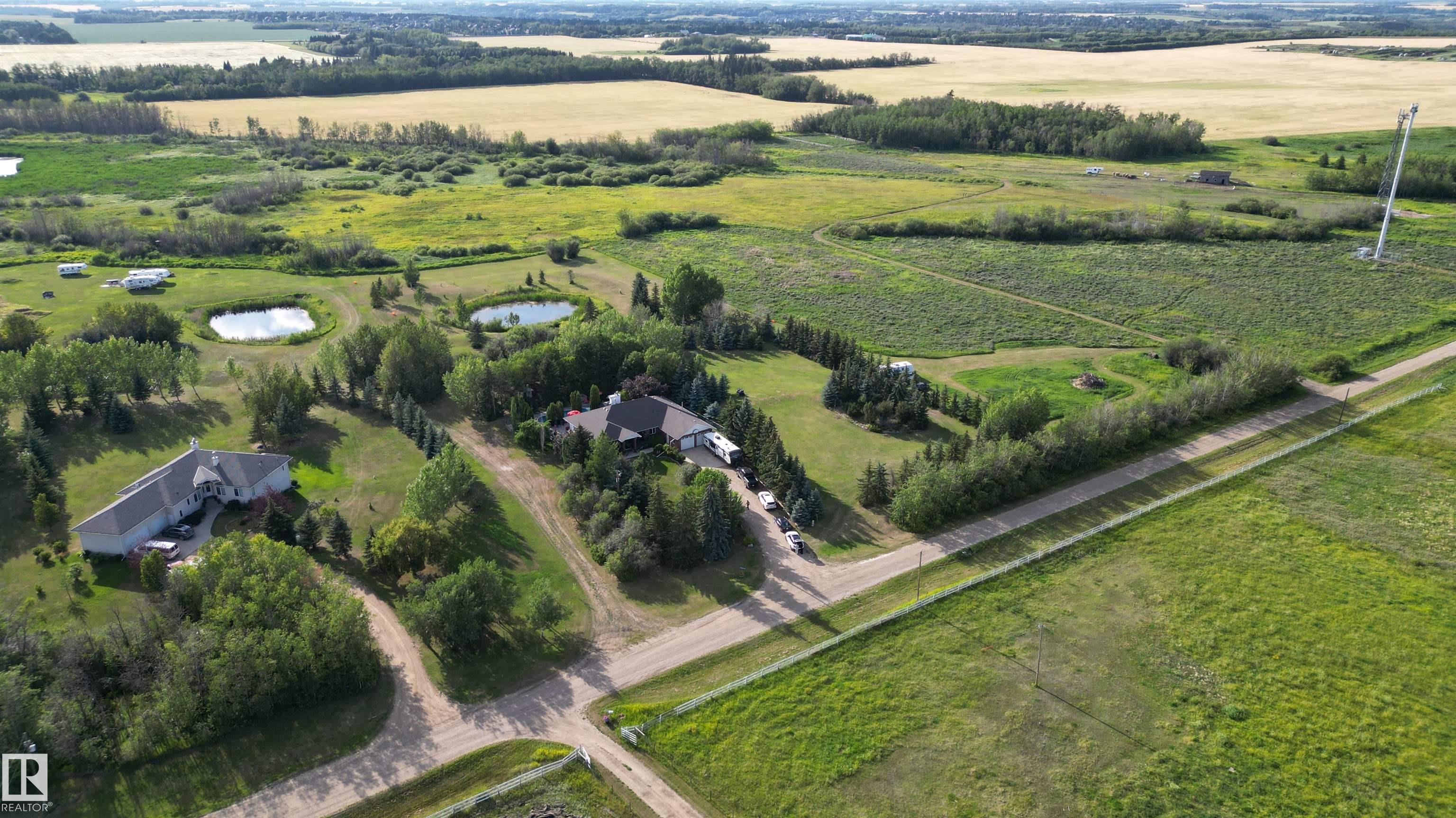 Welcome to Glenview Acres in Sturgeon County, just 5 minutes from Edmonton, where your private 15-acre retreat awaits. This 2,189 sq. ft. bungalow is thoughtfully designed for both relaxation and entertaining. The inviting country-style kitchen is built for gatherings, opening onto a spacious deck and sparkling heated pool with automatic cover. A warm, sunlit living room with a fireplace offers the perfect place to unwind. The primary suite is a true escape with a walk-in closet and 4-piece ensuite, complem...