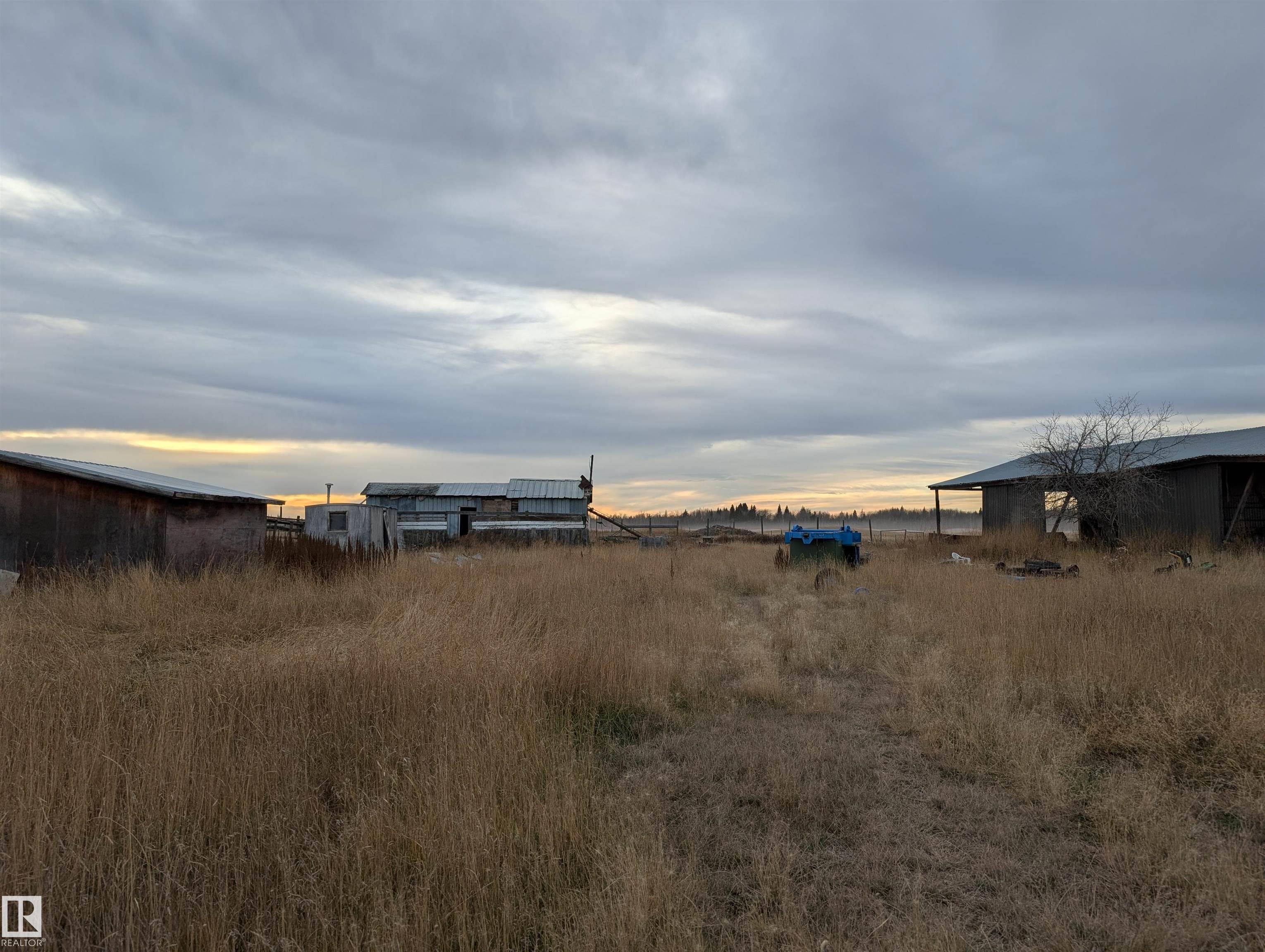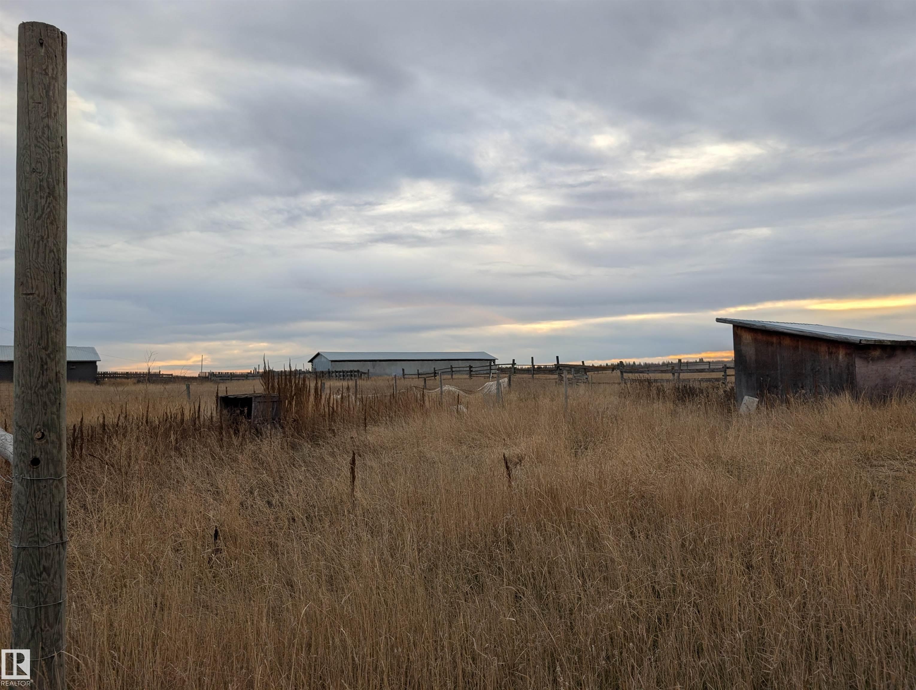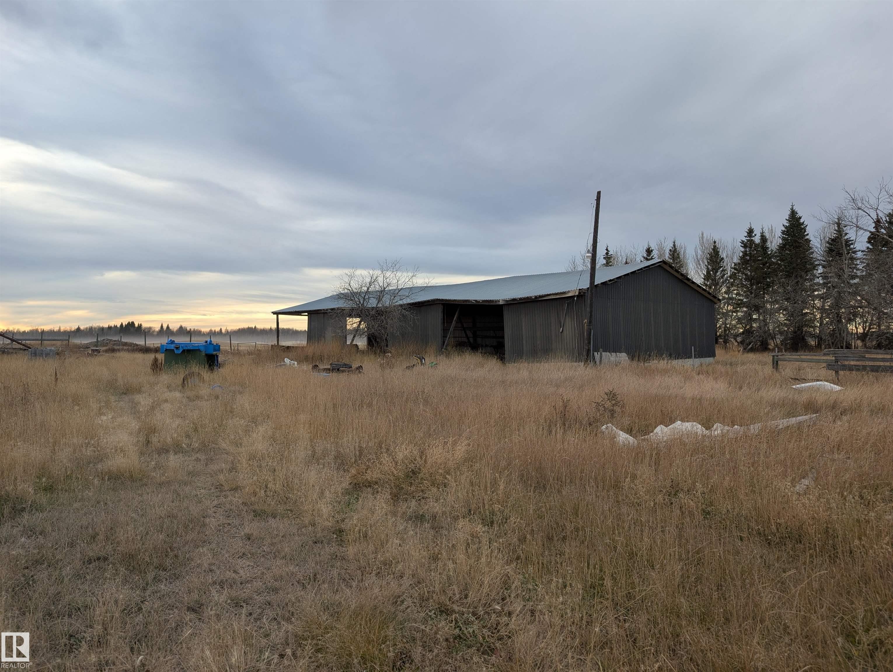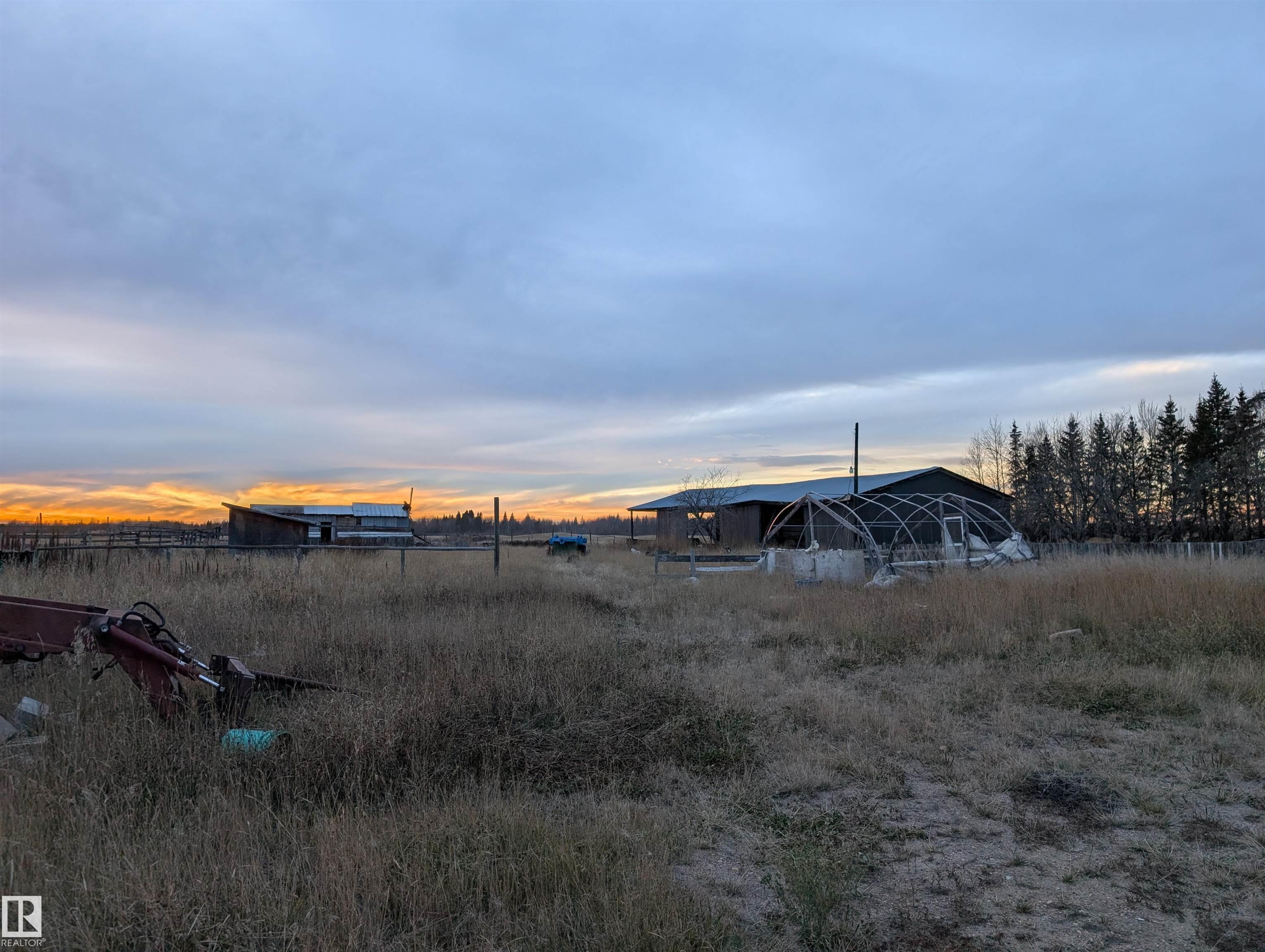 Handyman special- 1 bedroom up and 3 bedrooms down, 1 and a half bathrooms and large living room. 14.49 acres with 2 pole sheds, a barn and fenced in Thorhild county.